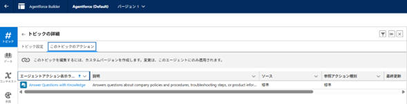 「このトピックのアクション」タブにいき、「Answer Questions with Knowledge」アクションを追加します。